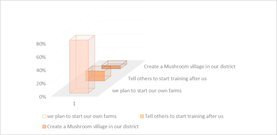 Looking ahead, a striking 80% aspired to start their farms, indicating a potential surge in mushroom farming adoption. The visionary 5% planning to establish a Mushroom village hinted at the initiative's long-term impact on community development.